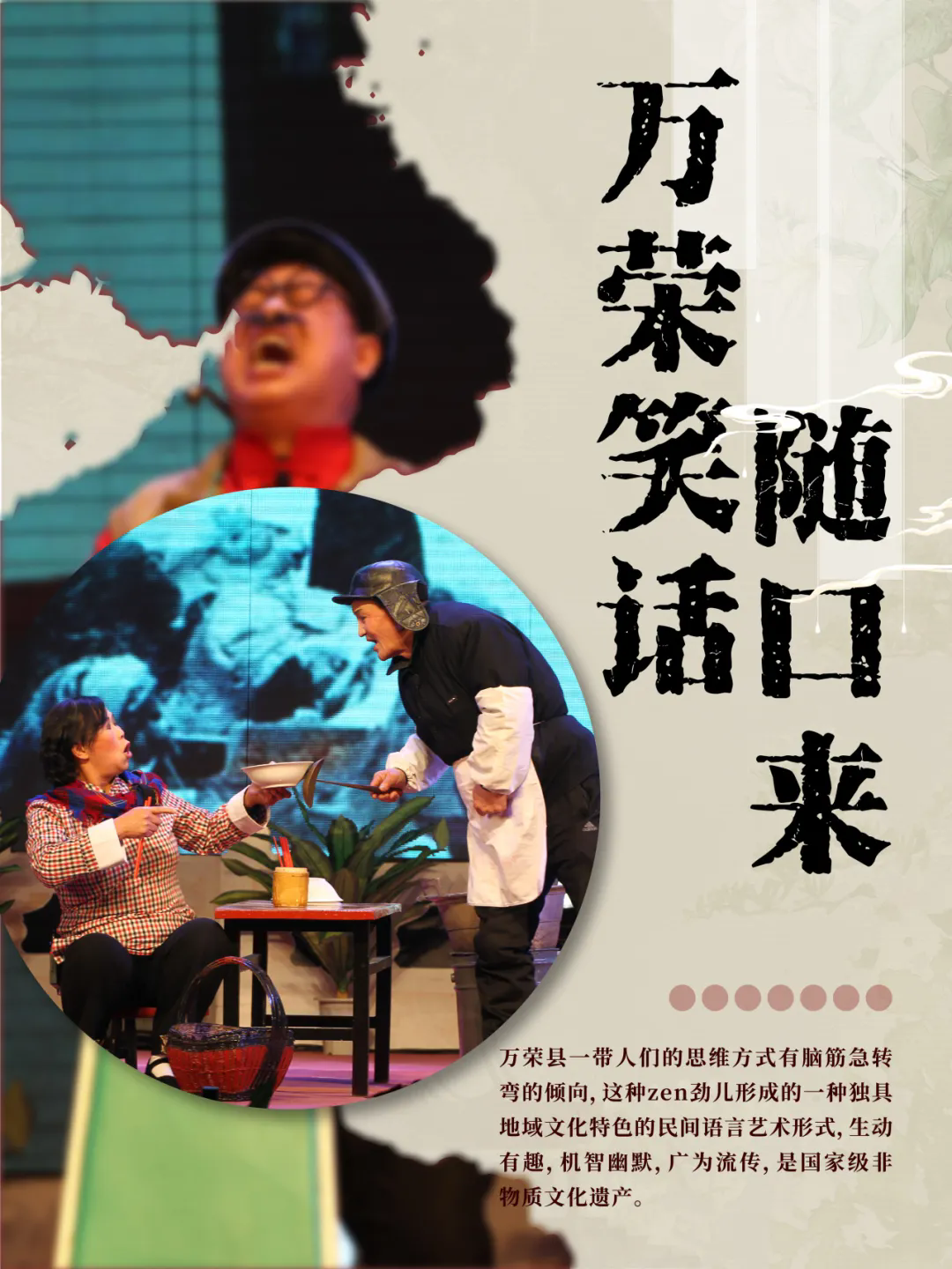 此设计通过一组十一张海报组成:主题海报+十大怪海报(花馍晒干身上带、打着鼓儿上高台、挖了泥巴烧成砚、数九寒天背冰块、花伞有花没有盖、糖瓜切薄叫麻片、油饼讲究里儿朝外、现做麻花不要脆、蒲剧眉户人人爱、万荣笑话随口来)。